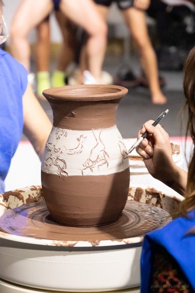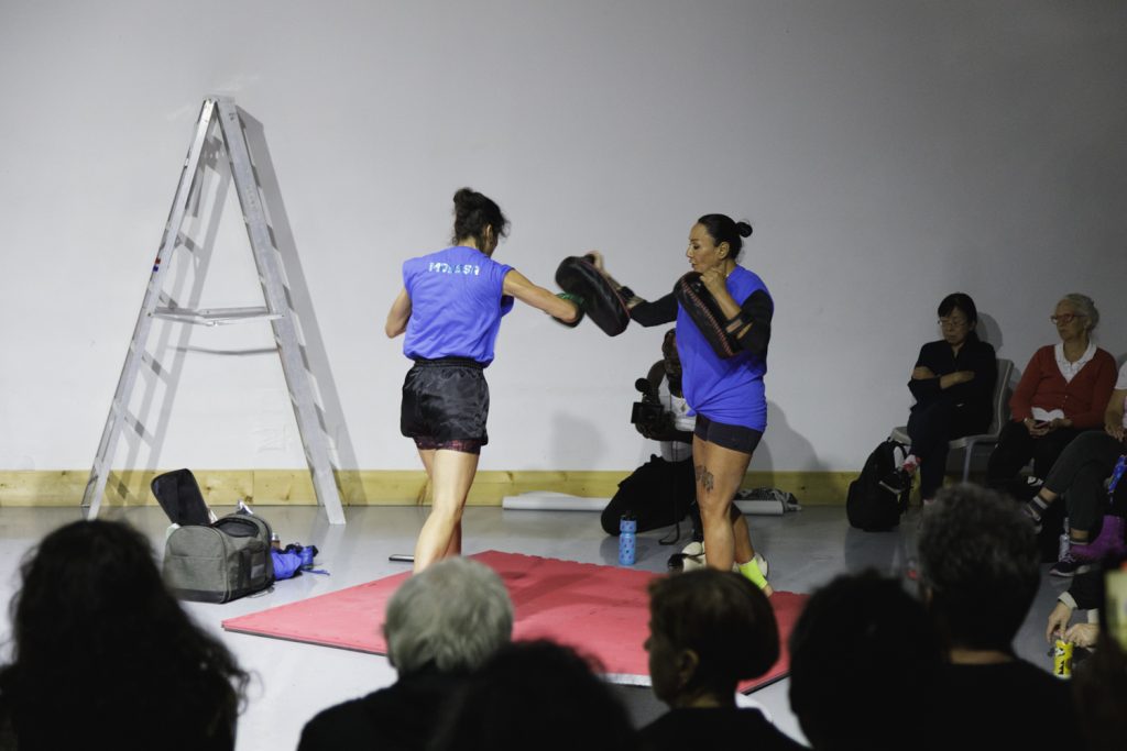 Avec Annie Fournier (céramiste), Liliane Moussa et Gisela Ferraiolo (athlètes en Muay thaï), Laurence Thériault et Isabelle Gauthier (duo mère-fille d’haltérophiles) et Emma-Kate Guimond (dessin).